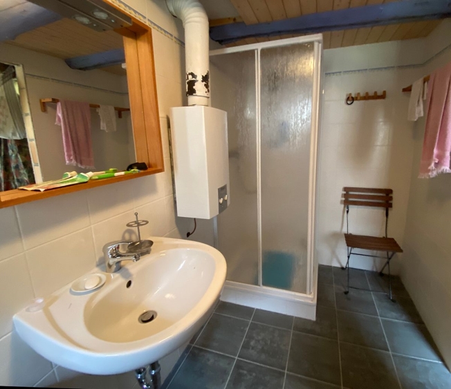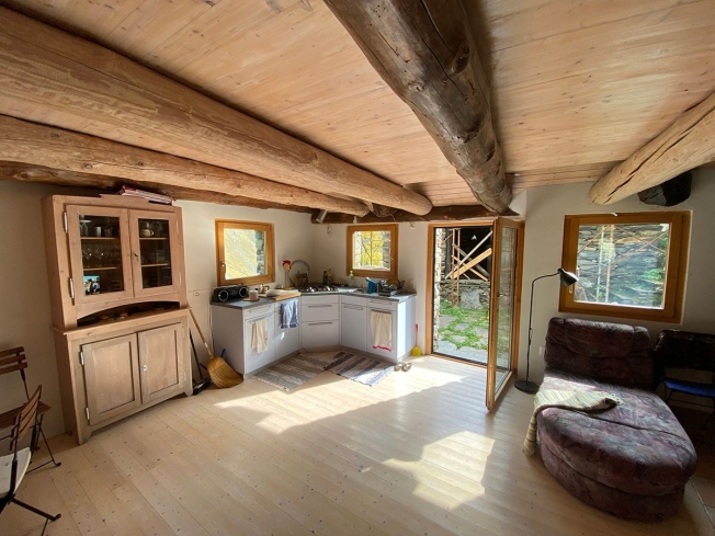 Si compone di un grande locale soggiorno/pranzo con cucina componibile con piano di cottura a gas, stufa a legna.
