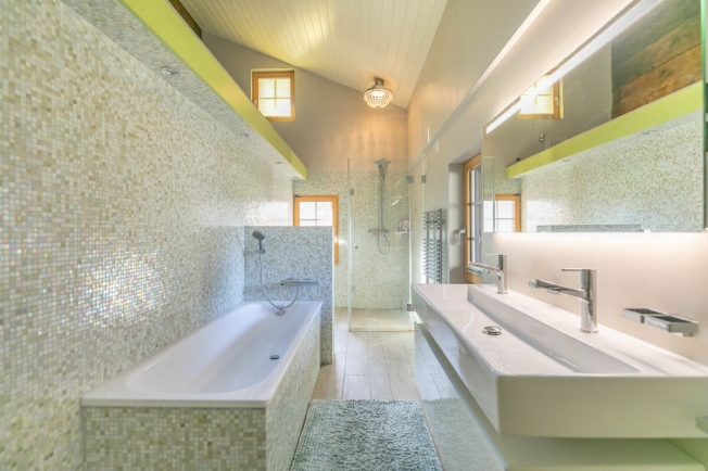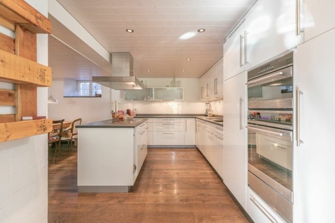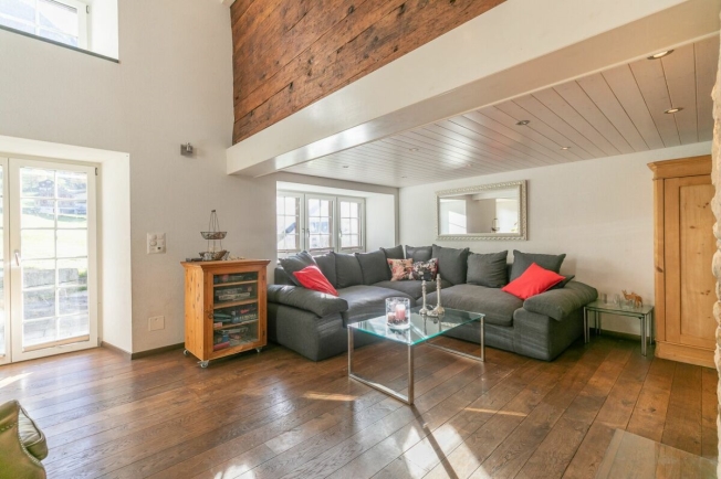 Der geräumige Wohn-/Essbereich besticht mit Cheminée, moderner Küche, offenem Galeriezimmer und Zugang zum Sitzplatz. Weiter findet sich im EG ein Zimmer, modernes Badezimmer, Atelier und ein Nebenraum. Der Schlafbereich im OG umfasst fünf geräumige Zimmer und ein Badezimmer mit offener Galerie. Die zahlreichen Nebenräume im Dachstock bieten viel Stauraum und weiteres Ausbaupotential. Der nach Südosten ausgerichtete Aussenbereich überzeugt mit grosszügigem Sitzplatz mit Sonnensegel und weitläufiger Wiesenfläche, welche reichlich Freiraum und Möglichkeiten zur Tierhaltung bietet. Mit zwei Garagen und Vorplatz sind zudem ausreichend Parkmöglichkeiten vorhanden.