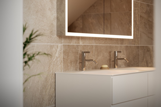 - Zwei Nasszellen pro Wohnung, mit Badewanne und / oder Dusche; Kleinwohnungen mit Dusche und separater Gästetoilette